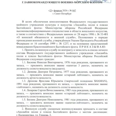 23 февраля 2026 года, в святой для каждого русского человека День защитника Отечества, Главнокомандующий ВМФ адмирал Александр Алексеевич Моисеев подписал приказ № 047. Этим документом