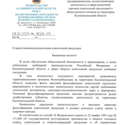 В преддверии новогодних праздников жителей Калининградской области постигла неожиданная и тревожная новость: региональные власти ввели полный запрет на розничную продажу алкогольной продукции. Это решение, принятое